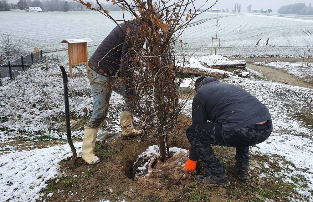 Anwohner sind engagiert bei der Pflanzung dabei.